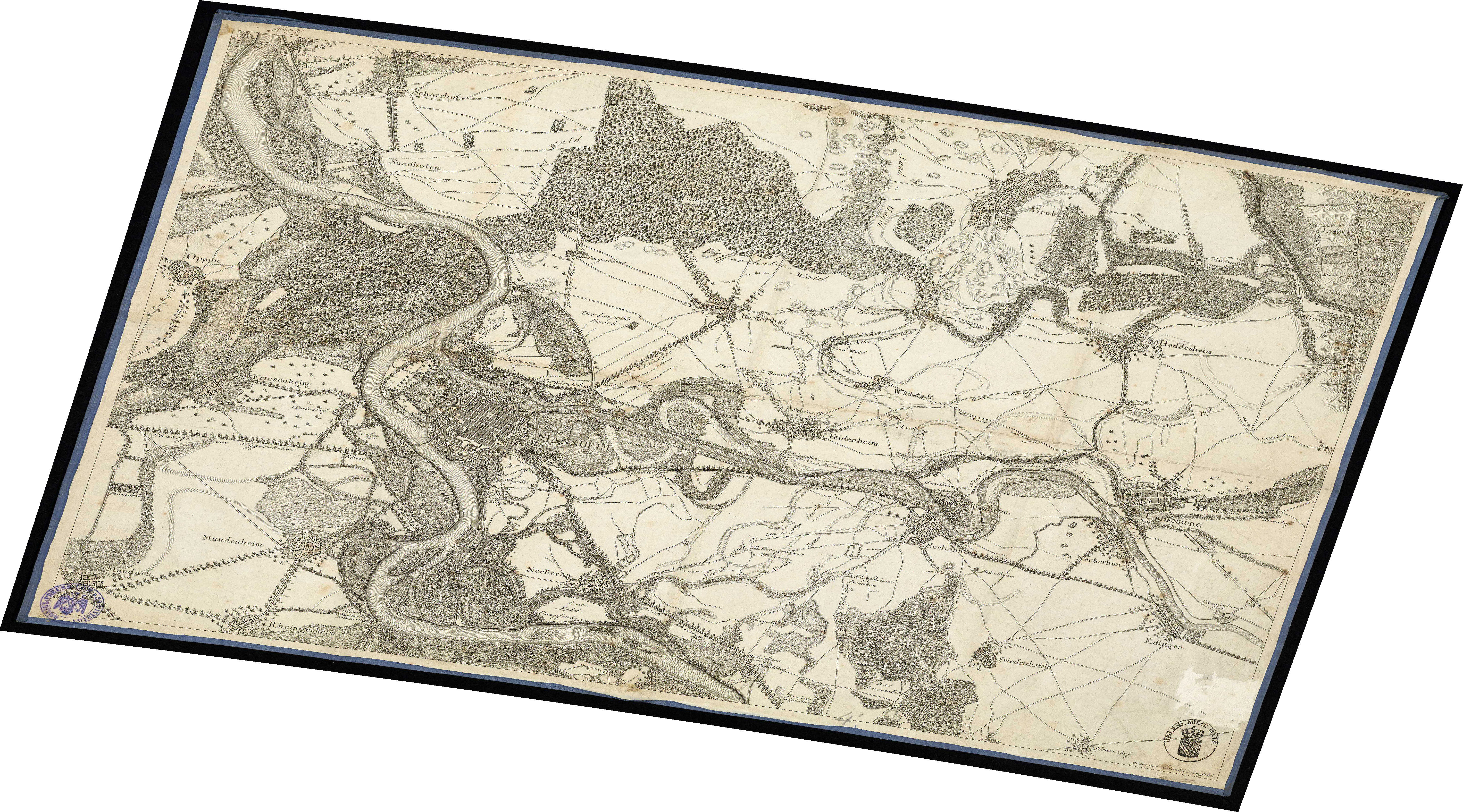 120px thumbnail File:I. Bogen der angekündigten Situations-Charte, aufgenommen und gezeichnet durch Haass, Artillerie-Lieutenant zu Darmstadt Kartenwerk zum 1. Koalitio - LABW - Hauptstaatsarchiv Stuttgart N 100 Nr. 342 -3.jpg